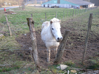 そろそろと走り寄ってきました、白い馬。